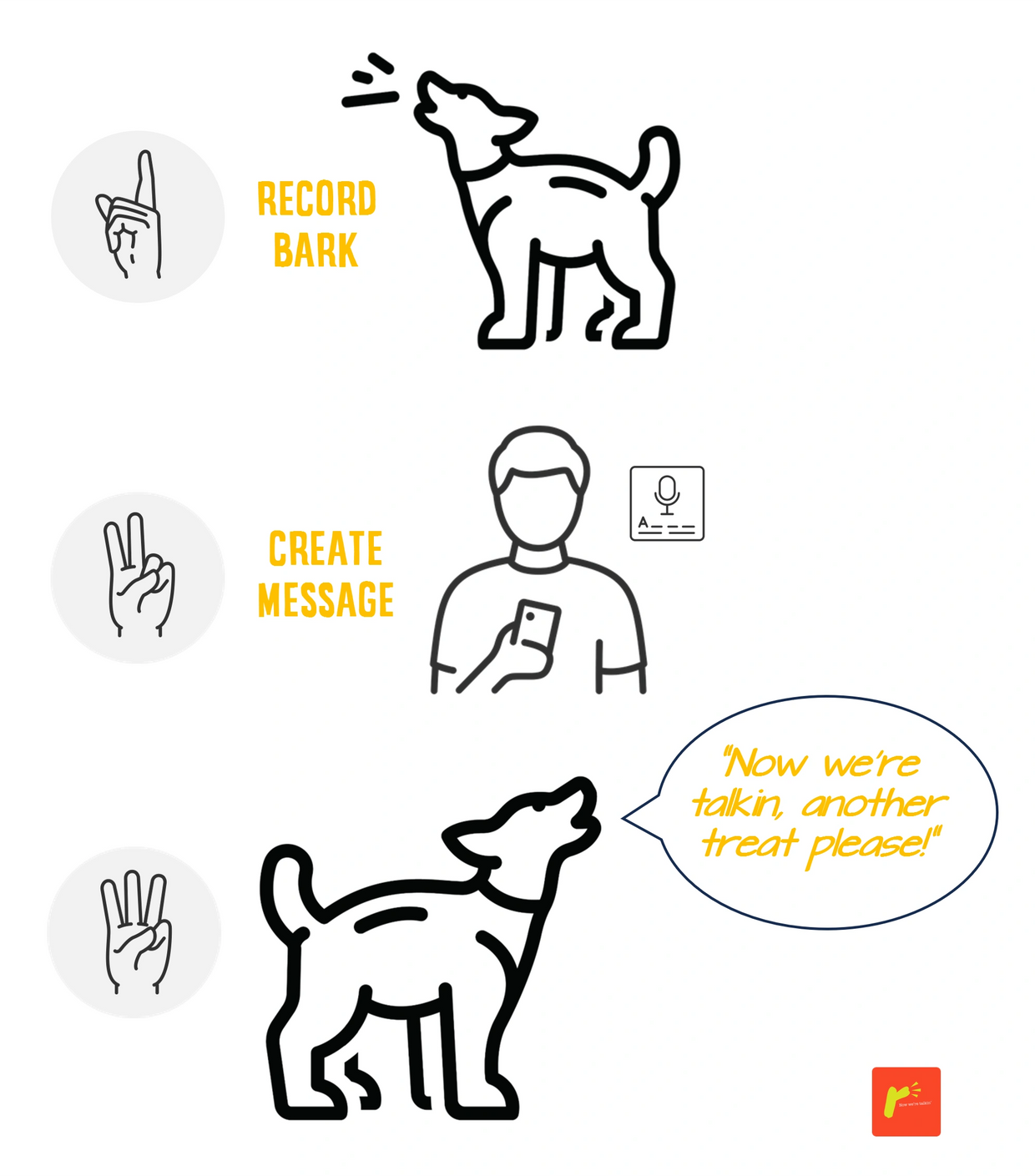 MUTTr technology converts the pitch, tone, and volume of a dog's bark into its equivalent human voice.